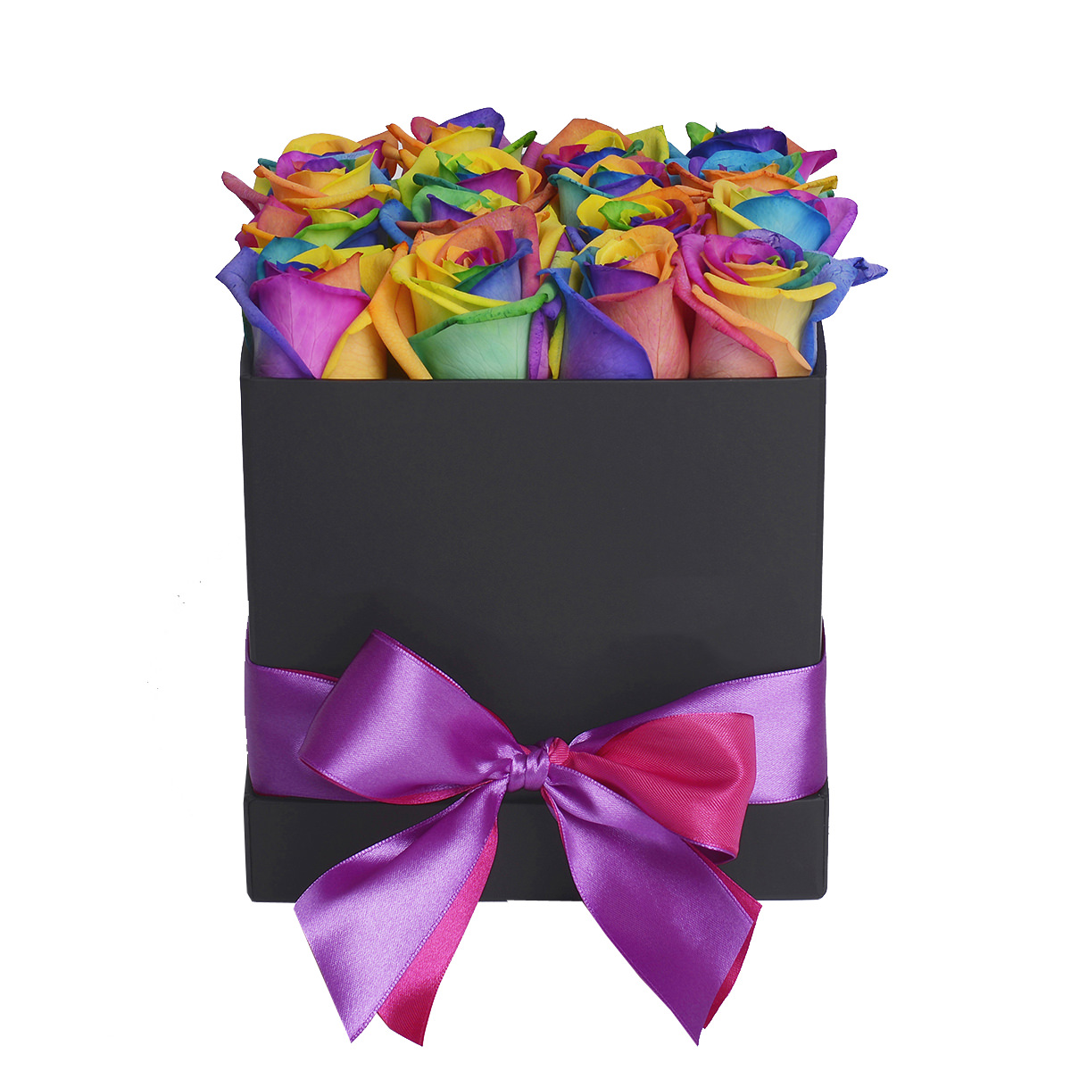 Цветы в коробке «Радужные Розы» с доставкой по г Арал: вы можете заказать букет в цветочном супермаркете «Цветоландия» по цене от 20500 тенге.
